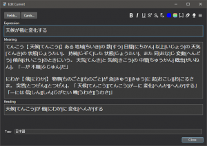 Now my card already has Furigana on it and you can tell by the Hiragana inside the [] brackets. This is important to note as the Furigana generation isn’t always correct, but as long as those [] brackets are there then you can change the text inside them to be correct.